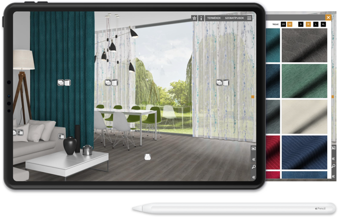 Online tervezőprogramunk segítségével valós enteriőrökbe ágyazva tekintheti meg a kiválasztott Rovitex-textileket.